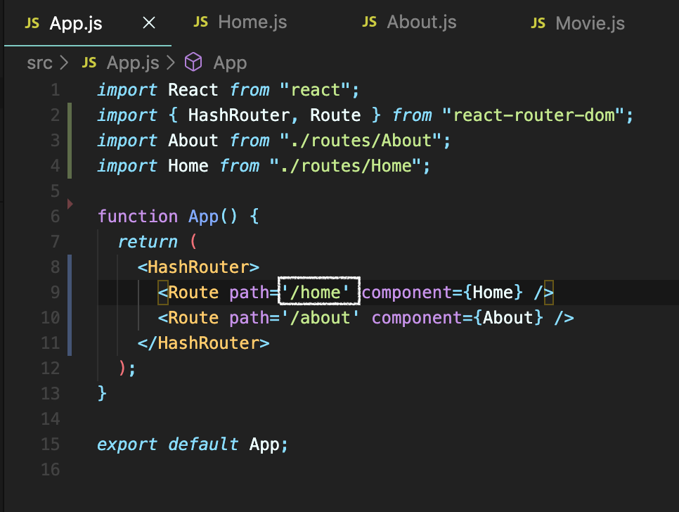 정확히 path가 '/'일 때만 Home component를 보여준다.